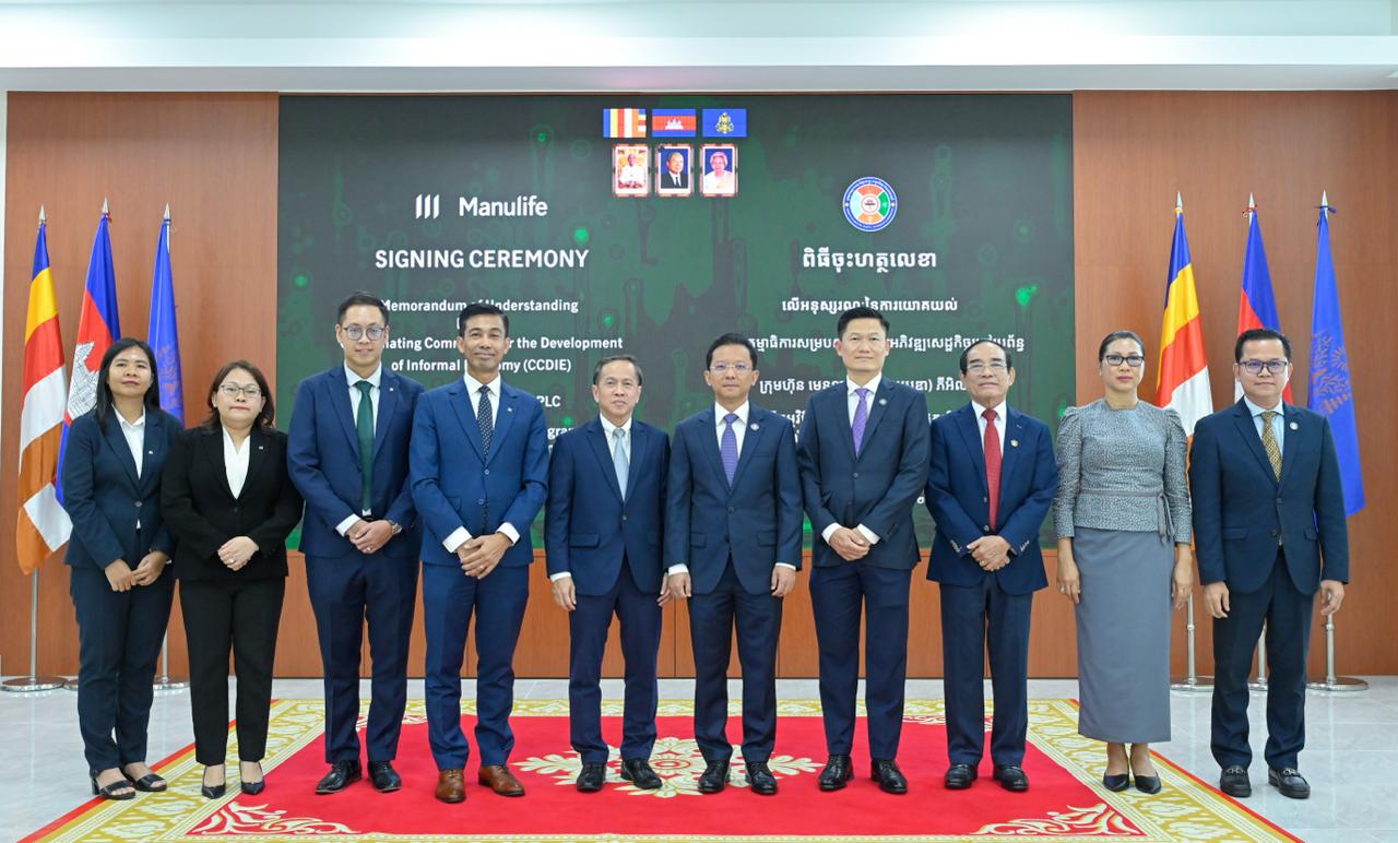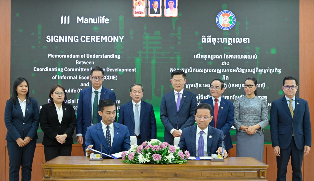 The Coordinating Committee for Developing the Informal Economy (CCDIE) and Manulife (Cambodia) Plc signed a Memorandum of Understanding (MoU) on September 8, 2025, to extend life insurance benefits and financial literacy training to informal economy actors who have registered with the Royal Government’s digital platform.